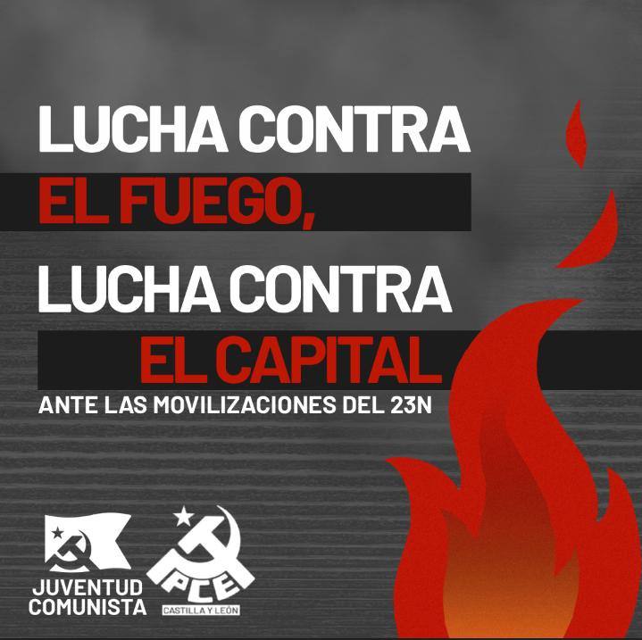 Por eso no hay medias tintas en esta lucha. No vamos a limitarnos a exigir la dimisión de Mañueco, Suárez-Quiñones y Arranz o a decir que son unos torpes. No vamos a limitarnos a decir que el fuego es imparable. La militancia comunista somos conscientes de que fuego y capital son dos problemas que avanzan de la mano si no le damos la vuelta al tablero. La forma de salvar nuestros montes, nuestros campos y nuestro medio rural es construir otra forma de vida, es acabar con el sistema que alienta esta destrucción.