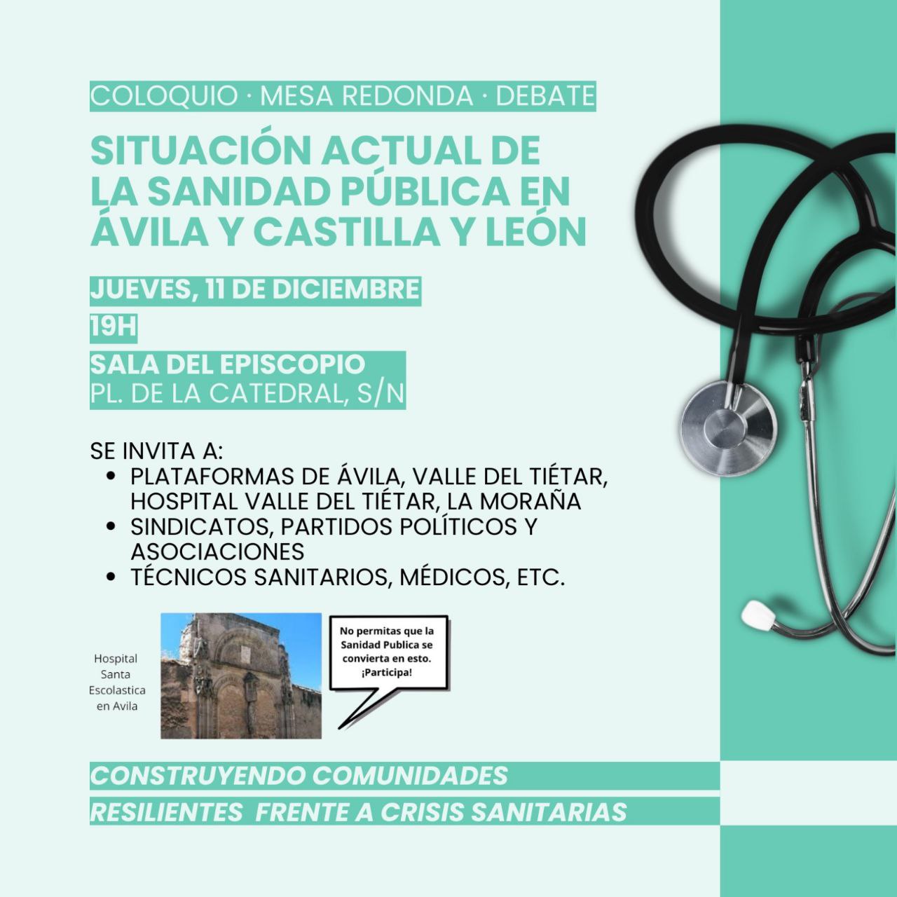 Pues vente este jueves a las 19h a la Sala Episcopio en Ávila a la charla que organizamos juntos con otros colectivos y movimientos y con las plataformas de la sanidad pública de la provincia de Ávila